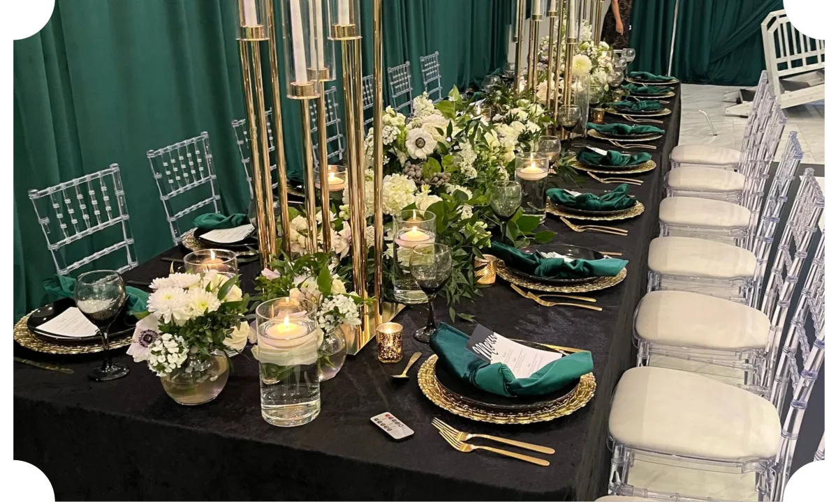 Décor and planning are available as add-on services. We’ll gladly connect you with our in-house planner or trusted vendors.