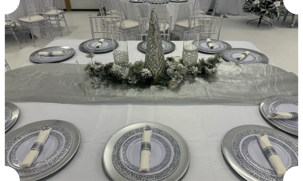 Our team has several different packages to fit your needs. We also offer all-inclusive wedding packages available upon request. Basic tables and basic chairs are included in certain packages as well as available for rent.